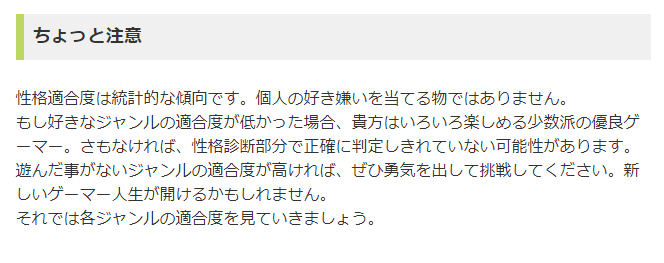 が、肝心のアクションゲームの性格適合度が高くないのは納得できない結果となりました。